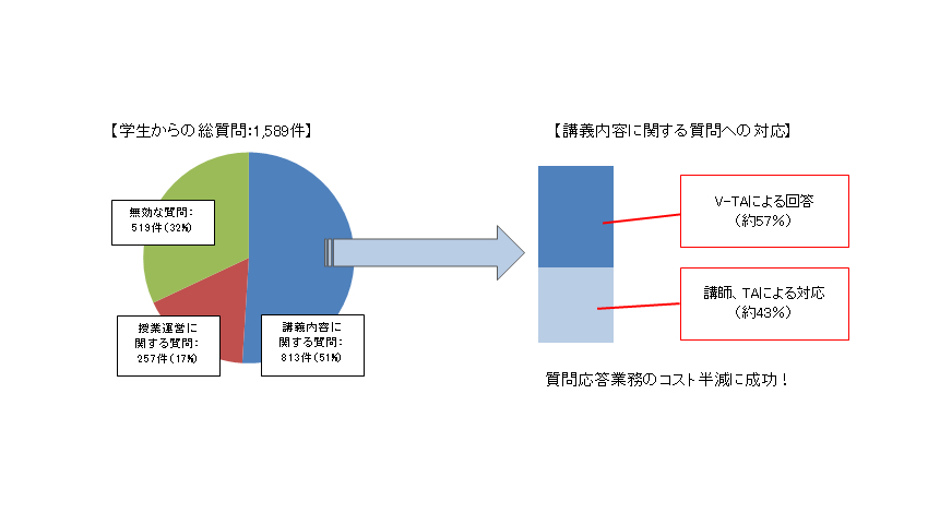 その結果、24時間365日、受講生の質問に対応可能になることに加え、V-TAがこれまで得られなかった受講生の疑問やニーズを効率的に収集するフィードバック機構としての役割を有することが確認された。