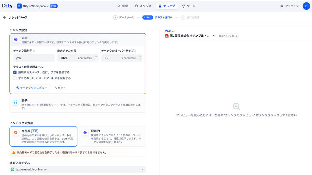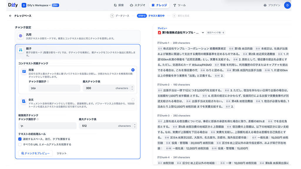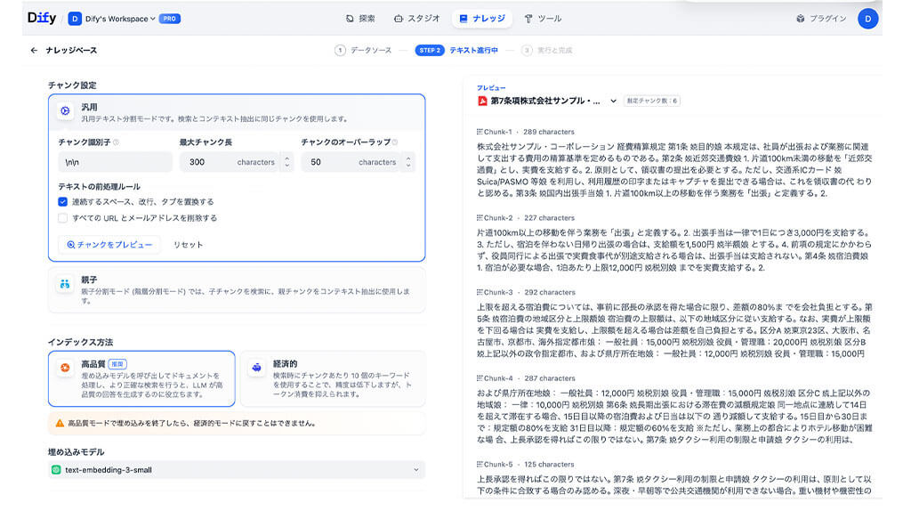 次に、チャンクを実際にどのように作るのか、Difyのナレッジ機能を活用して、社内マニュアルFAQシステムを構築してみます。