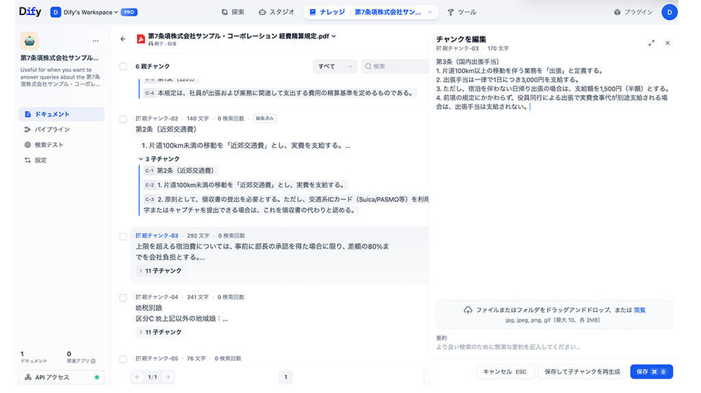 最終的にはインデックス画面上で「全ての条項を独立した親チャンクとして再定義する」という手作業を実施しました。