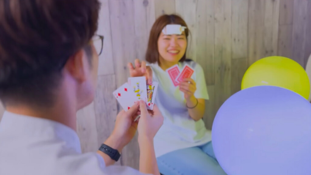 「Colors」は、脳波計(PGV社製haru-2)をつけたプレーヤーの脳波をもとに、その時々の状態をライトの色を反映しながら、ゲーム体験(今回はババ抜き)をするというものだ。