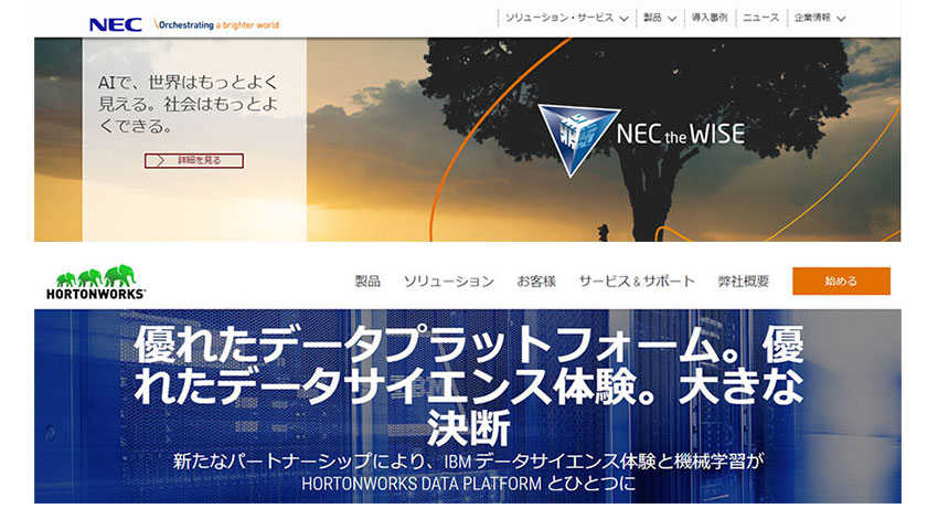NECとHortonworks、ビッグデータの分散処理領域における戦略的協業を強化