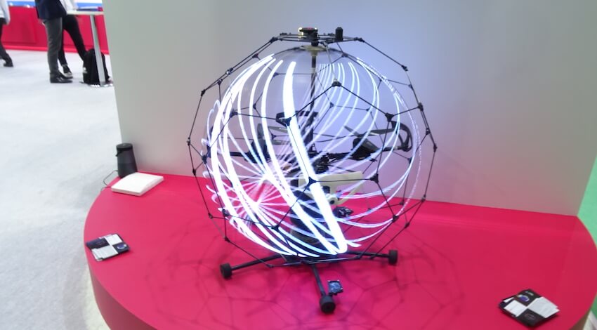 2018年に開発された「高解像度版浮遊球体ドローンディスプレイ」が展示されていた。