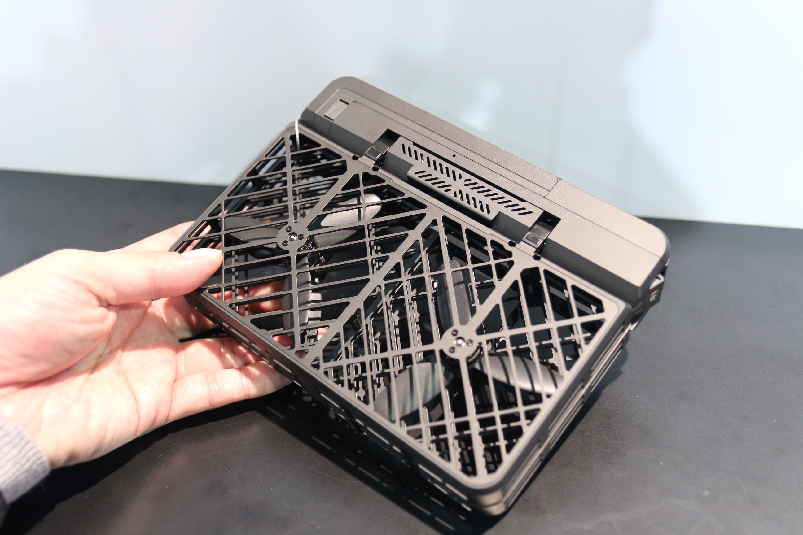 このドローンは折り畳みが可能で、飛ばす際は広げて使うが持ち運びの際は半分のサイズになる。