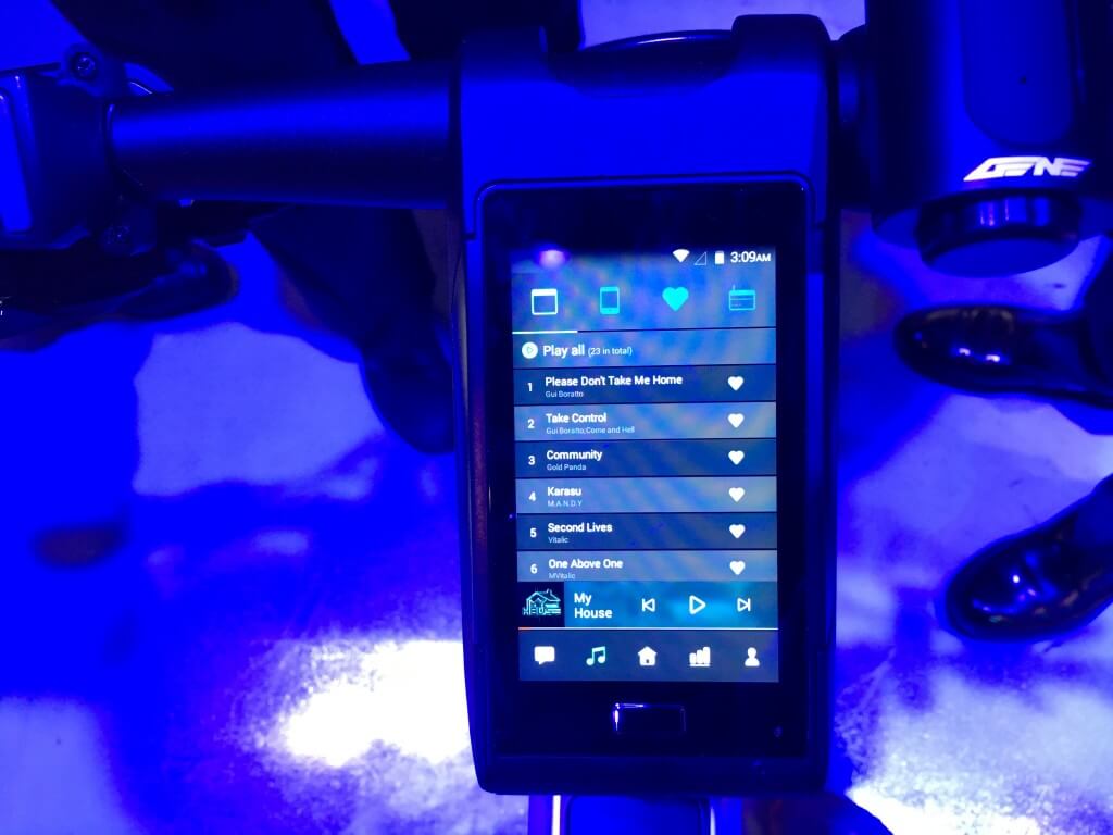 スマートフォンのようなタッチディスプレイと、カメラを装備しているのだか、スマートフォンのようなディスプレイにはマイクとスピーカーも搭載されているので自転車に乗りながら電話をしたり、音楽を聴くことができる。